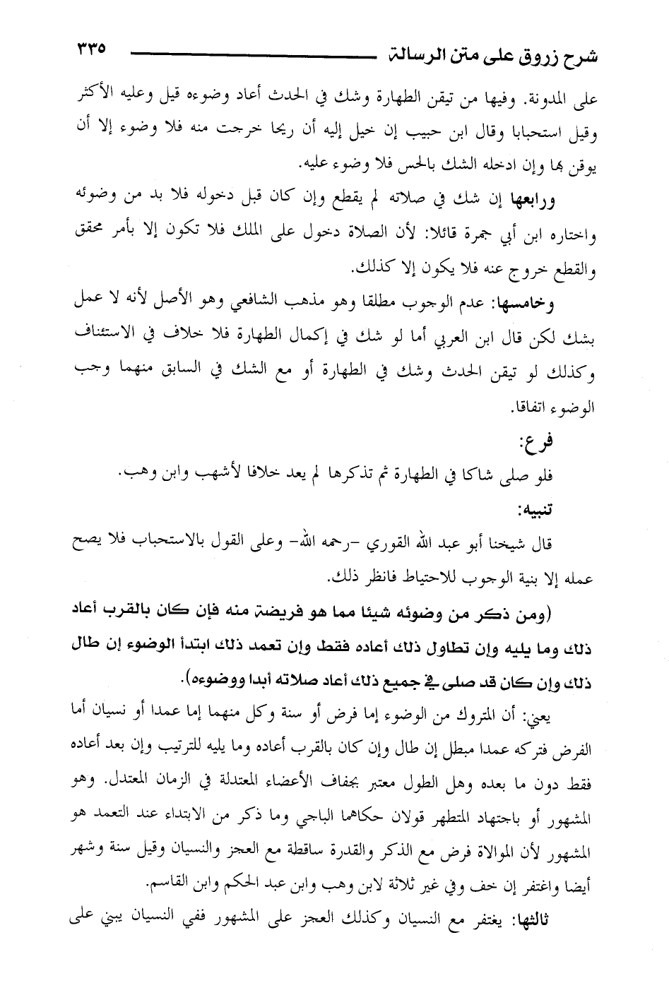 ورابعها: إن شك في صلاته لم يقطع وإن كان قبل دخوله فلا بد من وضوئه واختاره ابن أبي حمزة قائلاً: لأن الصلاة دخول على الملك فلا تكون إلا بأمر محقق والقطع خروج عنه فلا يكون إلا كذلك.