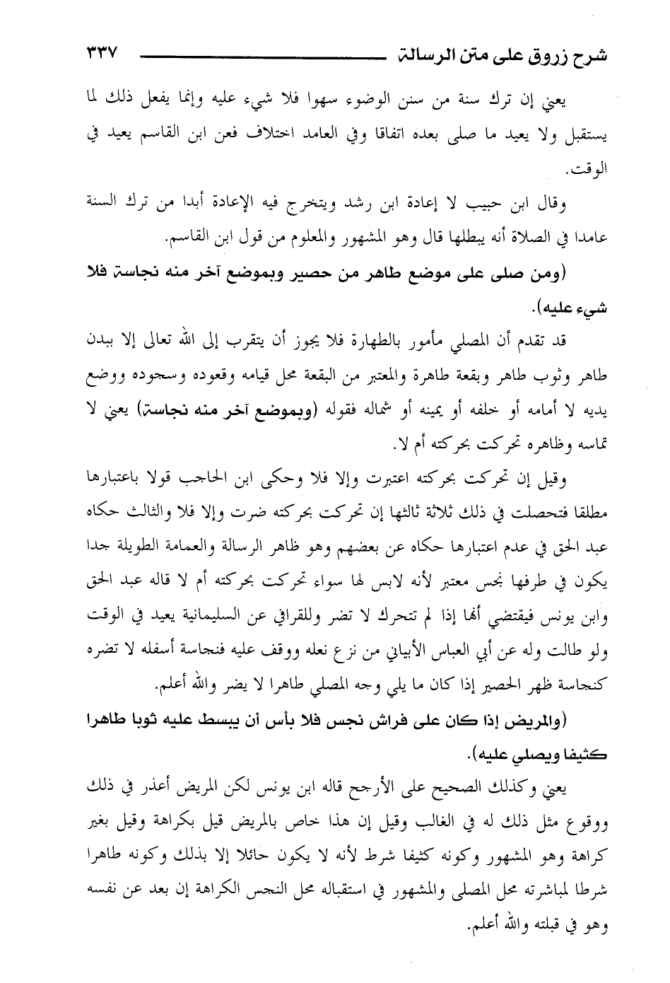 قد تقدم أن المصلي مأمور بالطهارة فلا يجوز أن يتقرب إلى الله تعالى إلا ببدن طاهر وثوب طاهر وبقعة طاهرة والمعتبر من البقعة محل قيامه وقعوده وسجوده ووضع يديه لا أمامه أو خلفه أو يمينه أو شماله فقوله (وبموضع آخر منه نجاسة) يعني لا تماسه وظاهره تحركت بحركته أم لا.
