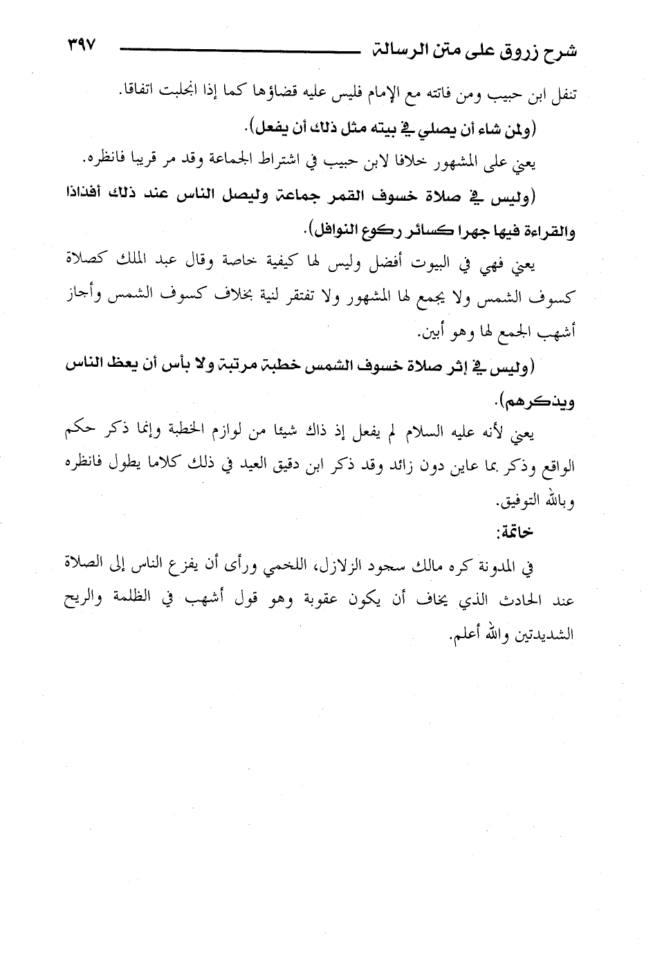 (وليس في إثر صلاة خسوف الشمس خطبة مرتبة ولا بأس أن يعظ الناس ويذكرهم).