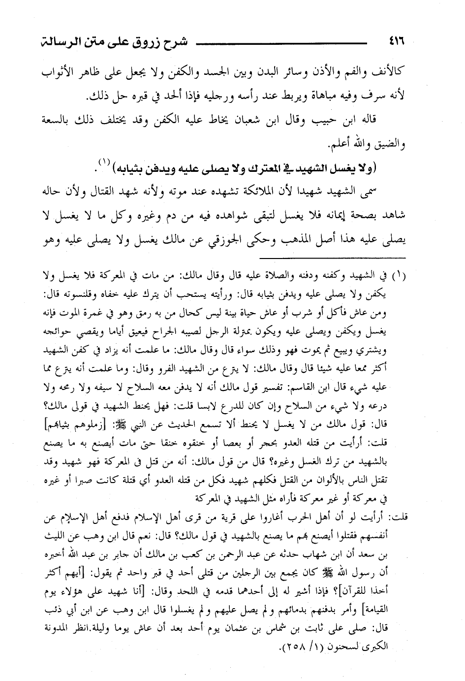 (ولا يغسل الشهيد في المعترك ولا يصلي عليه ويدفن بثيابه).