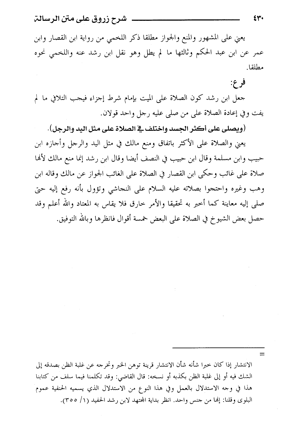 (ويصلى على أكثر الجسد واختلف في الصلاة على مثل اليد والرجل).