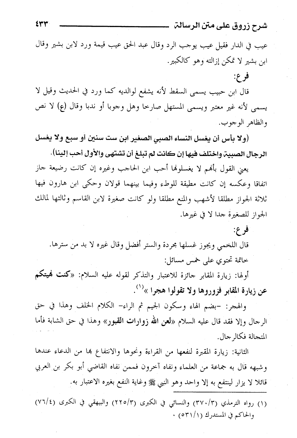أولها: زيارة المقابر جائزة للاعتبار والتذكر لقوله عليه السلام: «كنت نهيتكم عن زيارة المقابر فزوروها ولا تقولوا هجرا».
