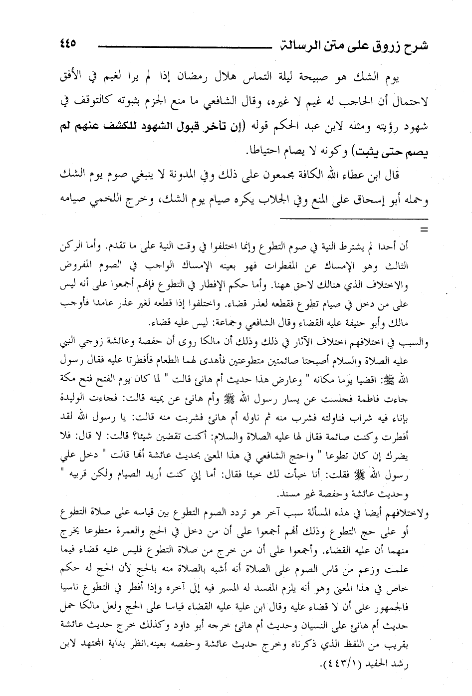 قال ابن عطاء الله الكافة مجمعون على ذلك وفي المدونة لا ينبغي صوم يوم الشك وحمله أبو إسحاق على المنع وفي الجلاب يكره صيام يوم الشك وخرج اللخمي صيامه