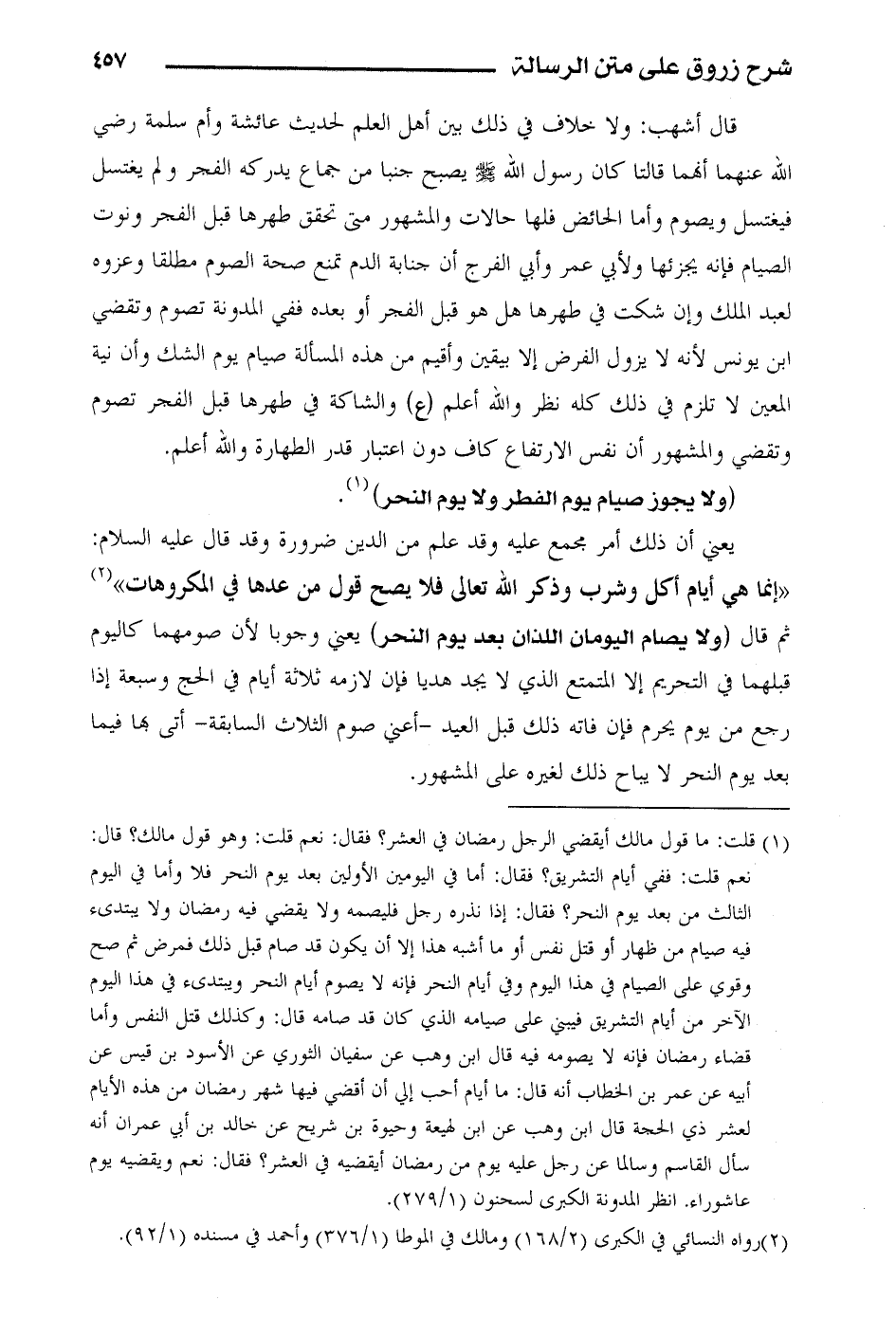 (ولا يجوز صيام يوم الفطر ولا يوم النحر).