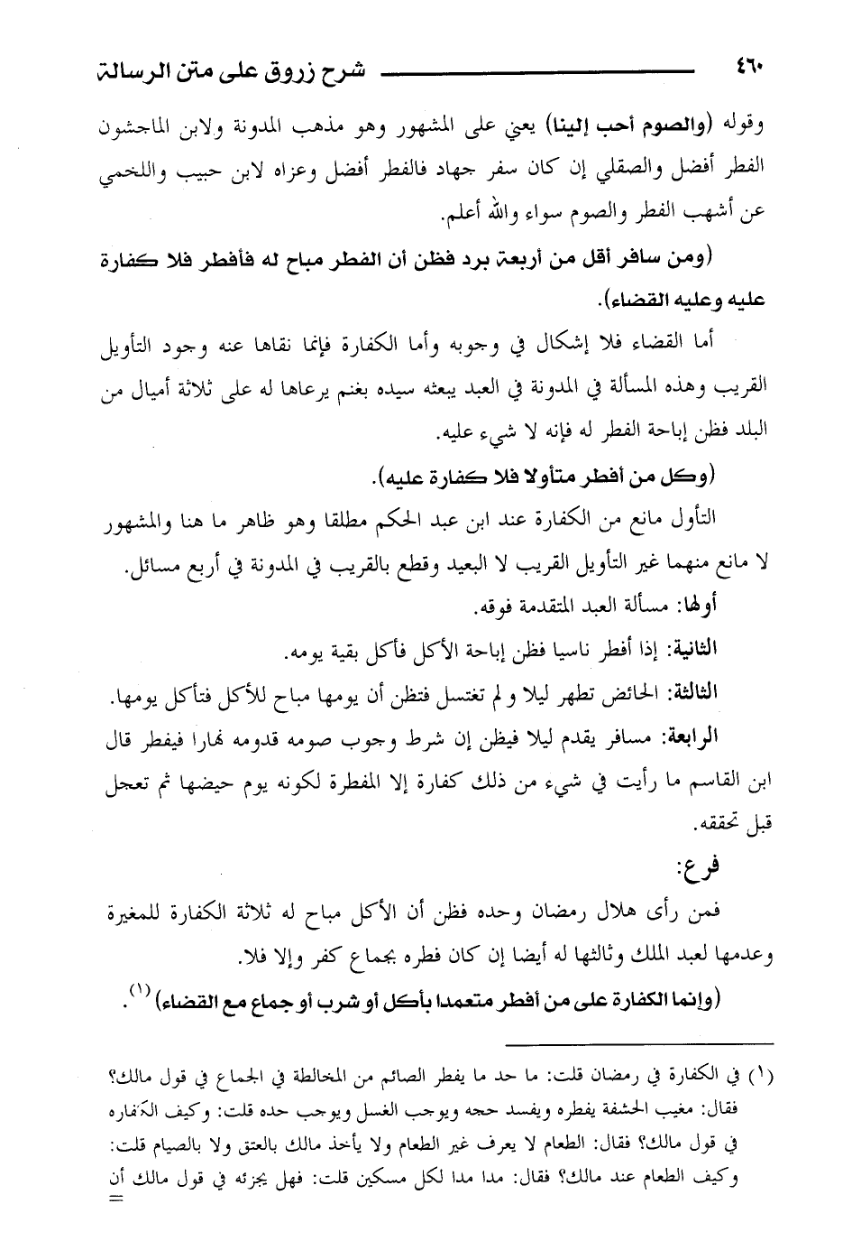 الرابعة: مسافر يقدم ليلا فيظن إن شرط وجوب صومه قدومه نهارا فيفطر قال ابن القاسم ما رأيت في شيء من ذلك كفارة إلا المفطرة لكونه يوم حيضها ثم تعجل قبل تحققه.