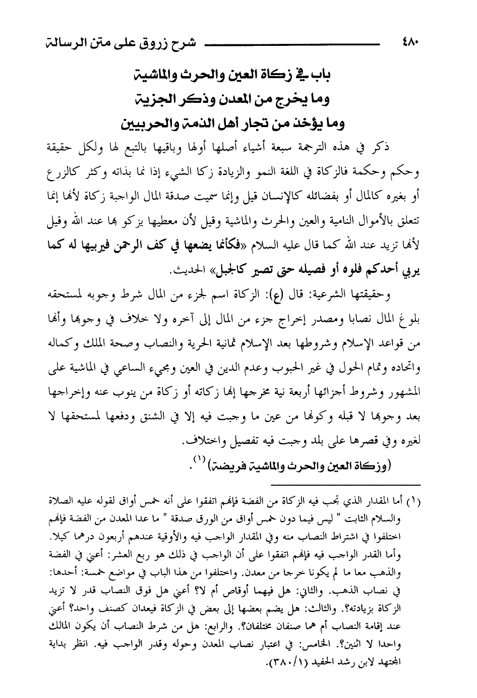 باب في زكاة العين والحرث والماشية وما يخرج من المعدن وذكر الجزية وما يؤخذ من تجار أهل الذمة والحربيين
