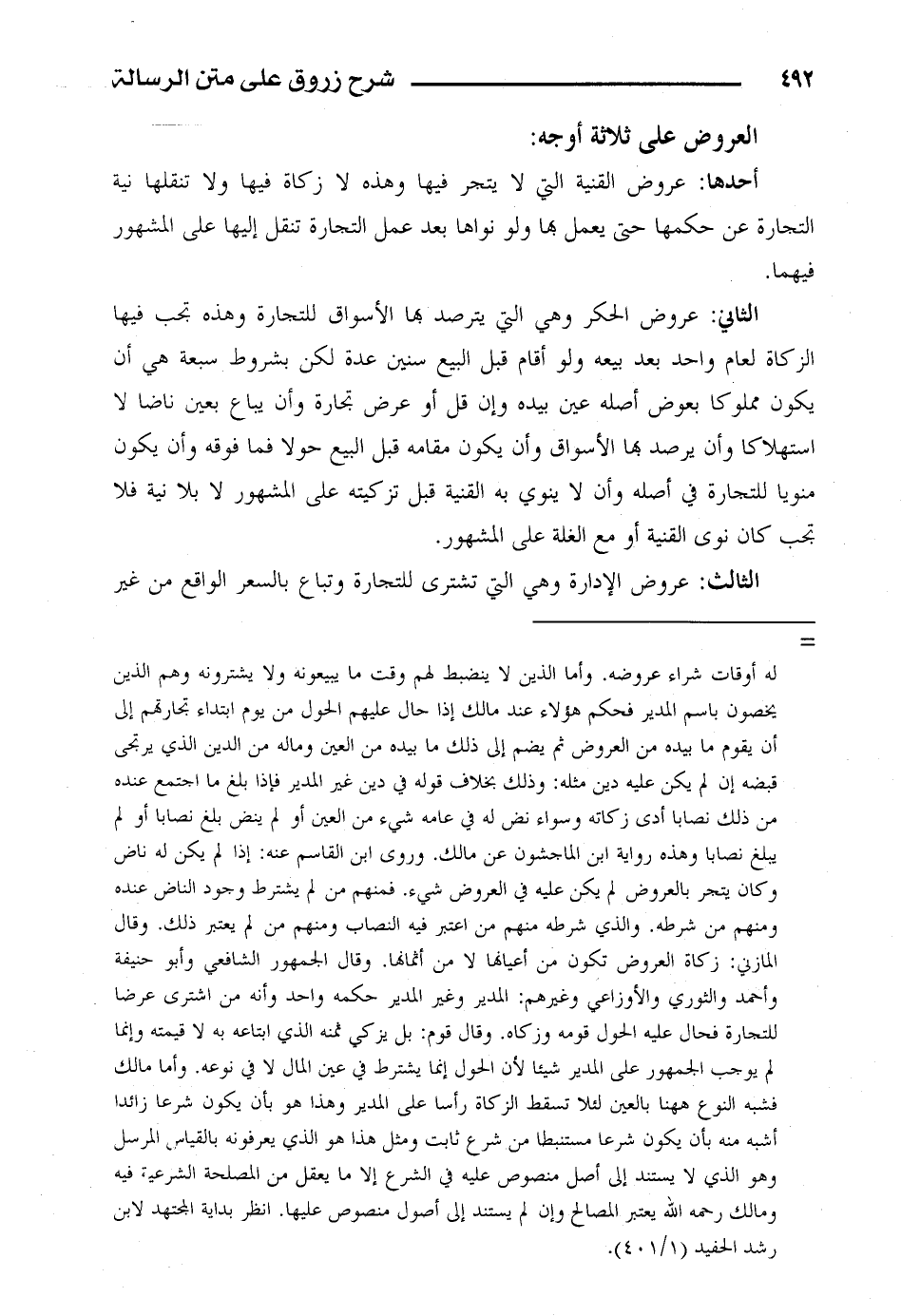 أحدها: عروض القنية التي لا يتجر فيها وهذه لا زكاة فيها ولا تنقلها نية التجارة عن حكمها حتى يعمل بها ولو نواها بعد عمل التجارة تنقل إليها على المشهور فيهما.