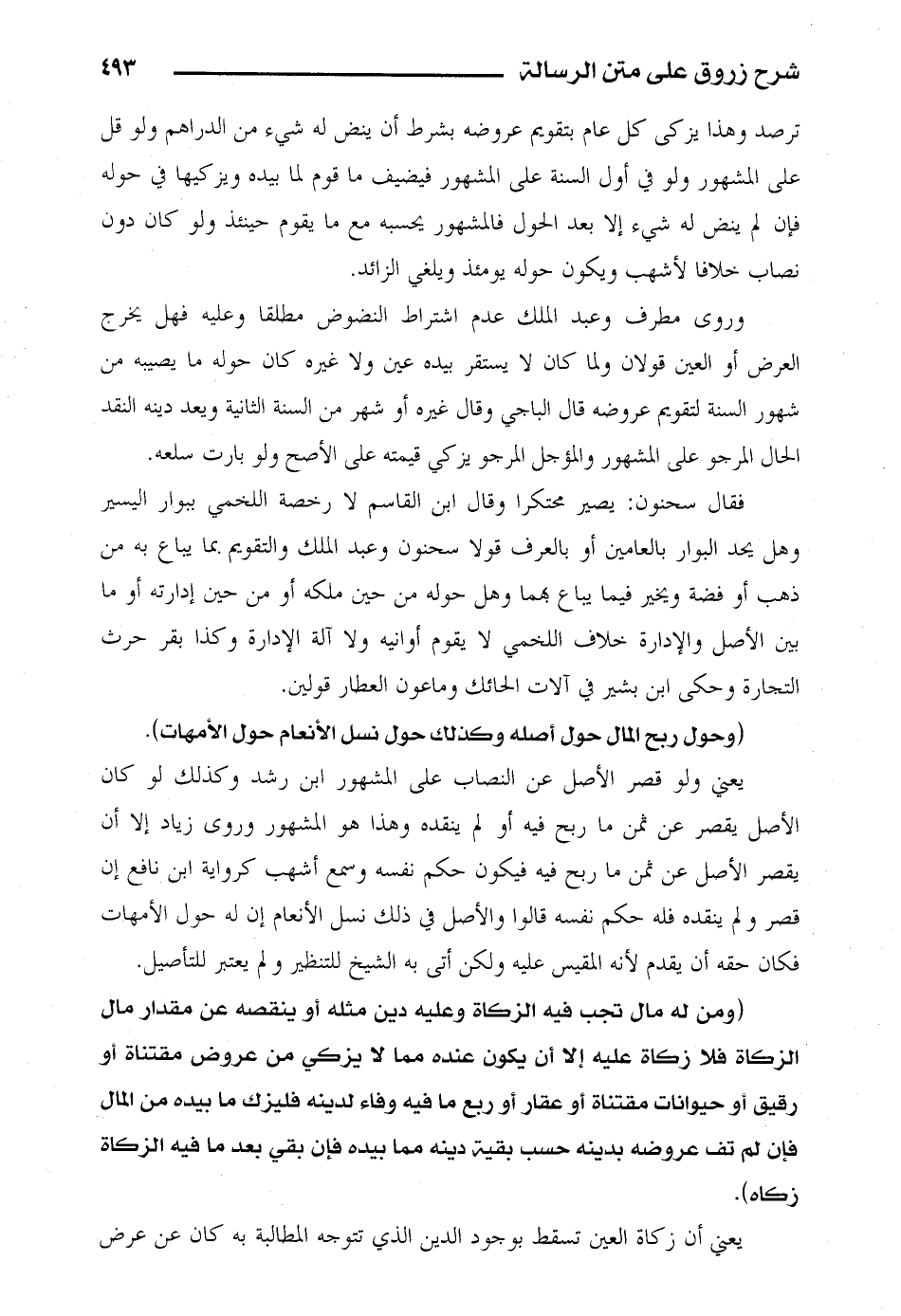 (وحول ربح المال حول أصله وكذلك حول نسل الأنعام حول الأمهات).