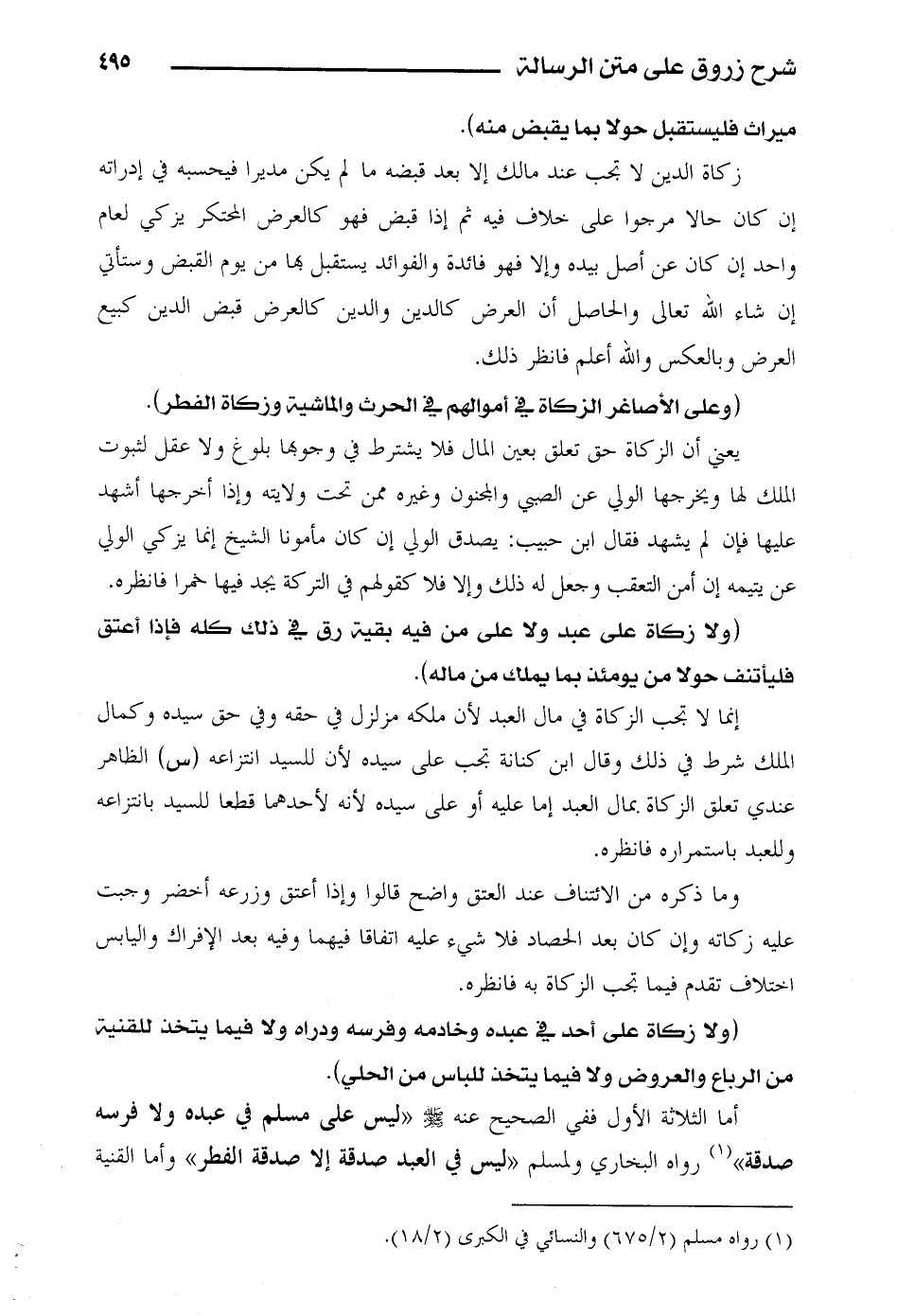 أما الثلاثة الأول ففي الصحيح عنه صلى الله عليه وسلم: «ليس على مسلم في عبده ولا فرسه صدقة» رواه البخاري ولمسلم «ليس في العبد صدقة إلا صدقة الفطر» وأما القنية