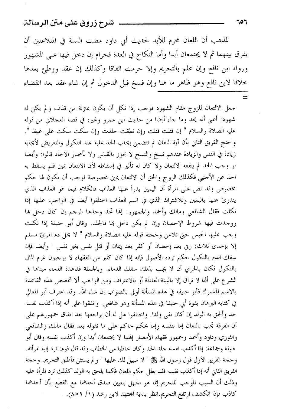 المذهب أن اللعان محرم للأبد لحديث أبي داود مضت السنة في المتلاعنين أن يفرق بينهما ثم لا يجتمعان أبدا وأما النكاح في العدة فحرام إن دخل فيها على المشهور ورواه ابن نافع وإن علم بالتحريم وإلا حرمت اتفاقا وكذلك إن عقد ووطئ بعدها خلافا لابن نافع وهو ظاهر ما هنا وإن فسخ قبل الدخول ثم إن شاء عقد بعد انقضاء