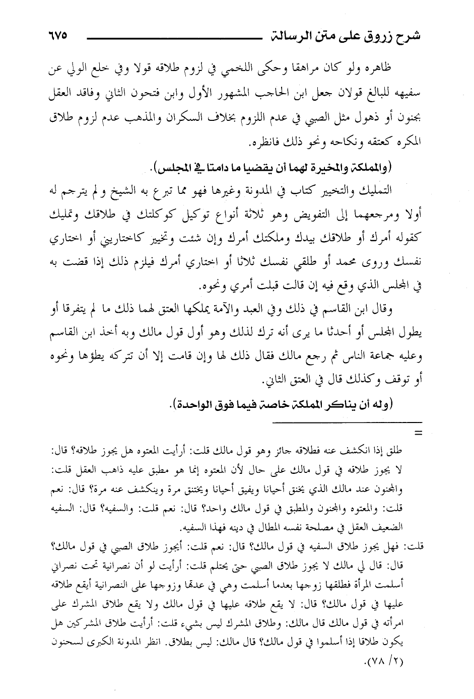 (وله أن يناكر المملكة خاصة فيما فوق الواحدة).