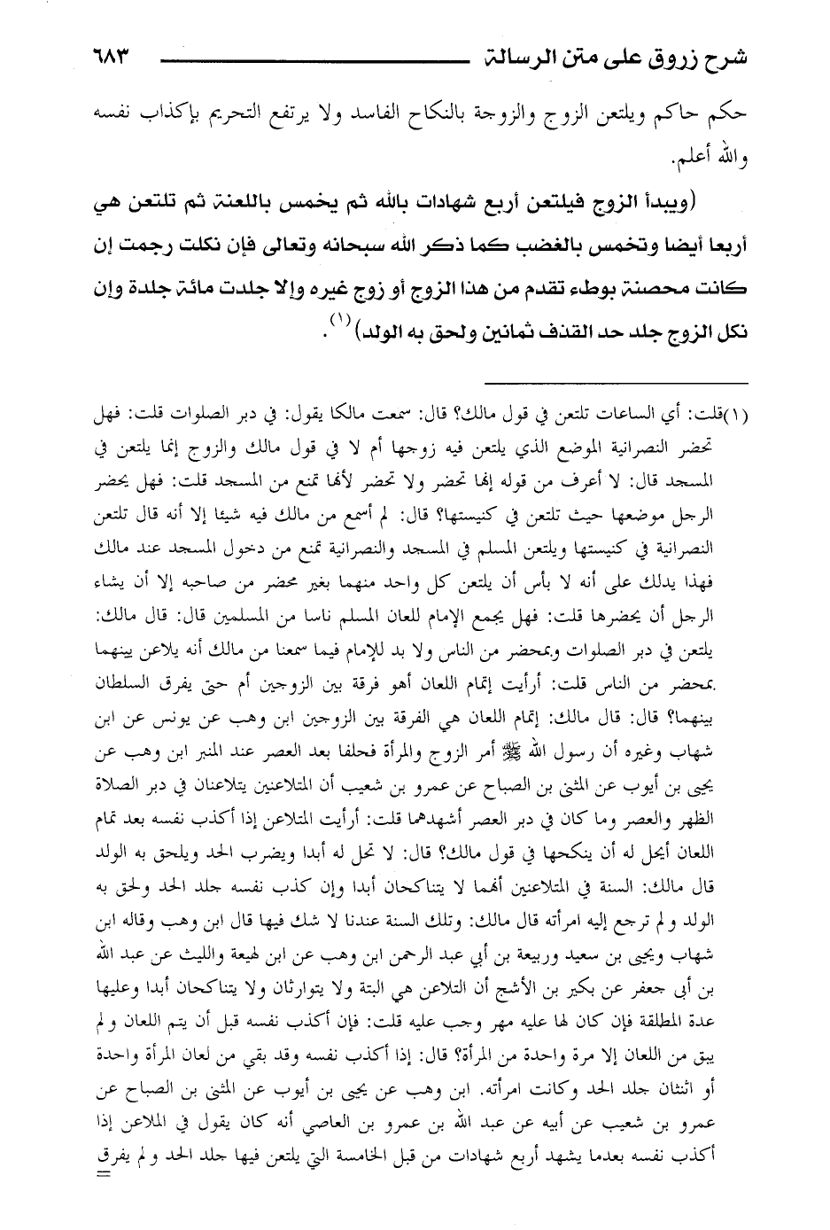 (ويبدأ الزوج فيلتعن أربع شهادات بالله ثم يخمس باللعنة ثم تلتعن هي أربعا أيضا وتخمس بالغضب كما ذكر الله سبحانه وتعالى فإن نكلت رجمت إن كانت محصنة بوطء تقدم من هذا الزوج أو زوج غيره وإلا جلدت مائة جلدة وإن نكل الزوج جلد حد القذف ثمانين جلدة ولحق به الولد).