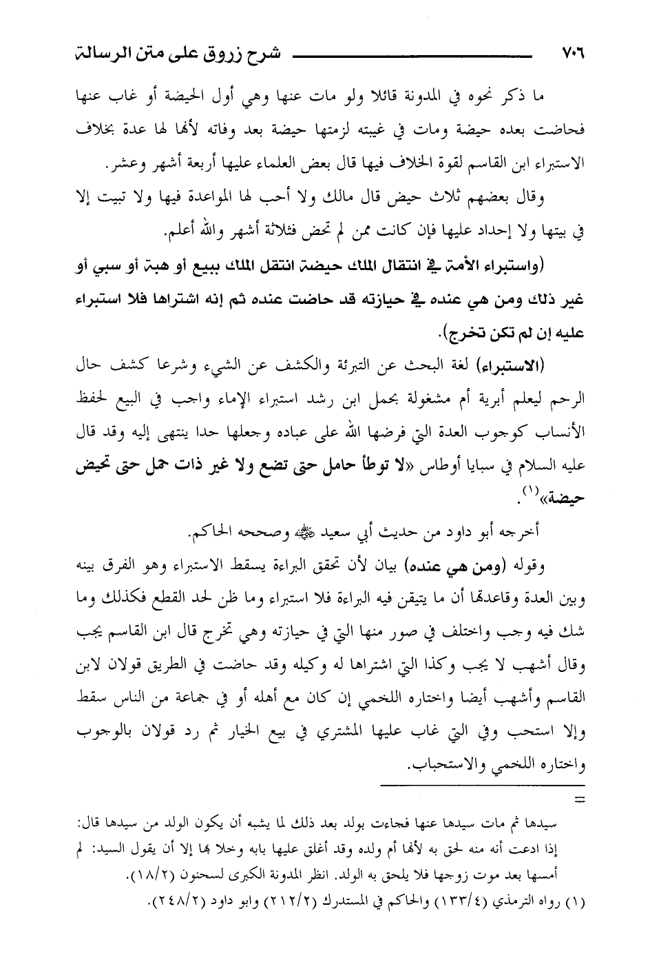 (الاستبراء) لغة البحث عن التبرئة والكشف عن الشيء وشرعا كشف حال الرحم ليعلم أبرية أم مشغولة بحمل ابن رشد استبراء الإماء واجب في البيع لحفظ الأنساب كوجوب العدة التي فرضها الله على عباده جعلها حدا ينتهى إليه وقد قال عليه السلام في سبايا أوطاس " لا توطأ حامل حتى تضع ولا غير ذات حمل حتى تحيض حيضة".