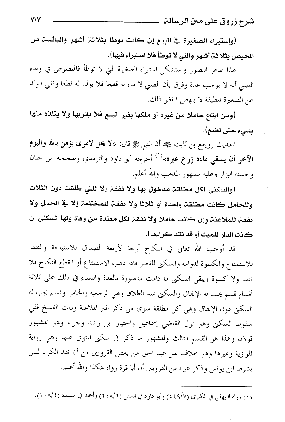 الحديث رويفع بن ثابت رضي الله عنه أن النبي صلى الله عليه وسلم قال: " لا يحل لامرئ يؤمن بالله واليوم الآخر أن يسقي ماءه زرع غيره" أخرجه أبو داود والترمذي وصححه ابن حبان وحسنه البزار وعليه مشهور المذهب والله أعلم.