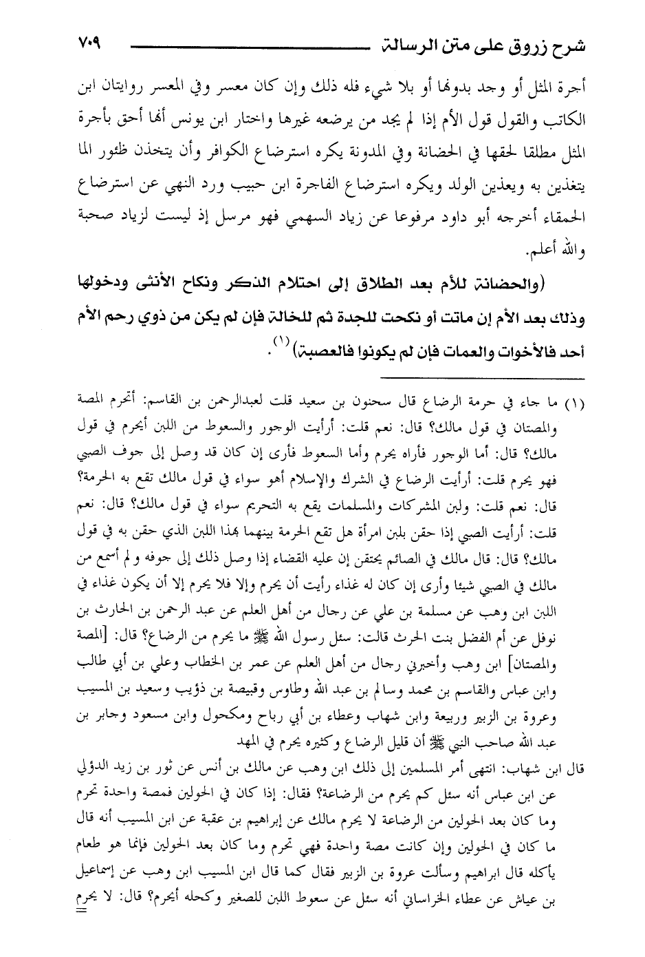 (والحضانة للأم بعد الطلاق إلى احتلام الذكر ونكاح الأنثى ودخولها وذلك بعد الأم إن ماتت أو نكحت للجدة ثم للخالة فإن لم يكن من ذوي رحم الأم أحد فالأخوات والعمات فإن لم يكونوا فالعصبة).