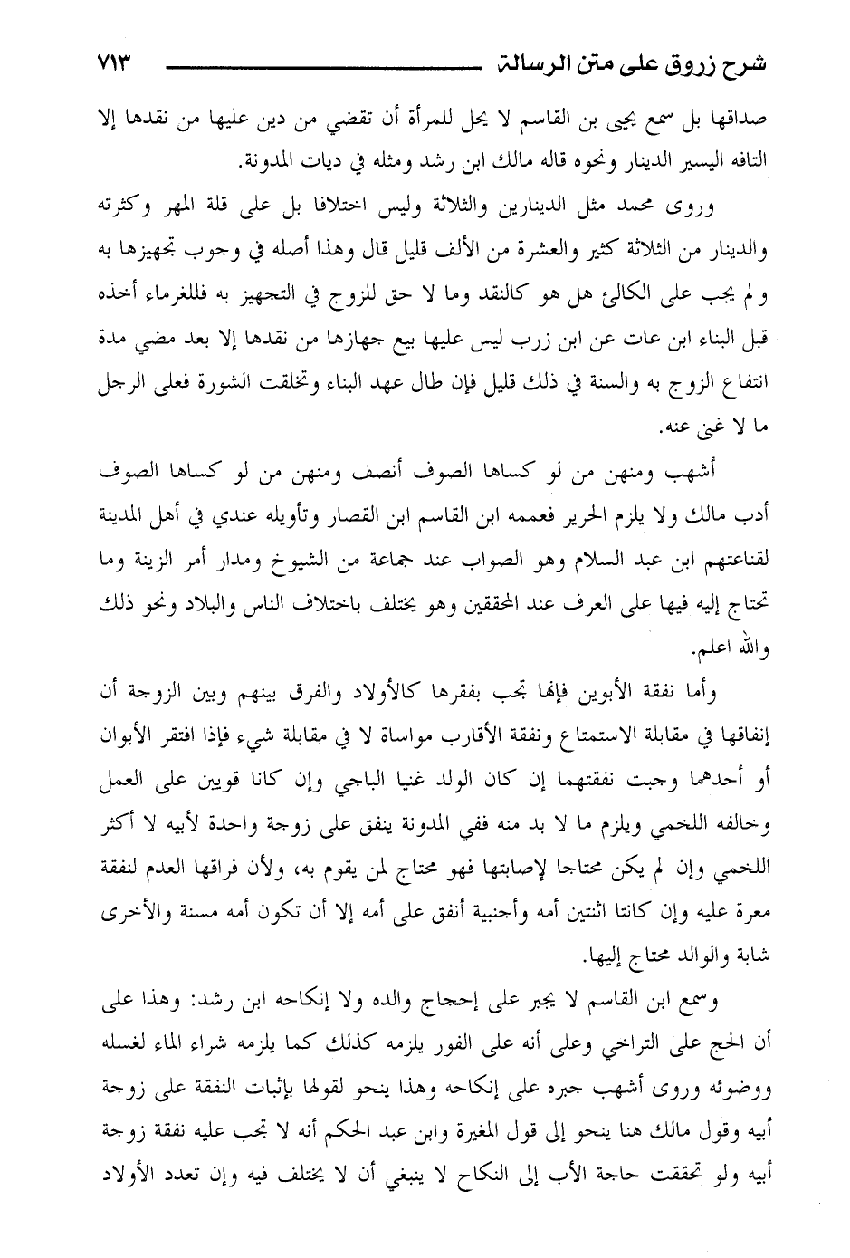 أشهب ومنهن من لو كساها الوصف أنصف ومنهن من لو كساها الصوف أدب مالك ولا يلزم الحرير فعممه ابن القاسم ابن القصار وتأويله عندي في أهل المدينة لقناعتهم ابن عبد السلام وهو الصواب عند جماعة من الشيوخ ومدار أمر الزينة وما تحتاج إليه فيها على العرف عند المحققين وهو يختلف باختلاف الناس والبلاد ونحو ذلك والله أعلم.