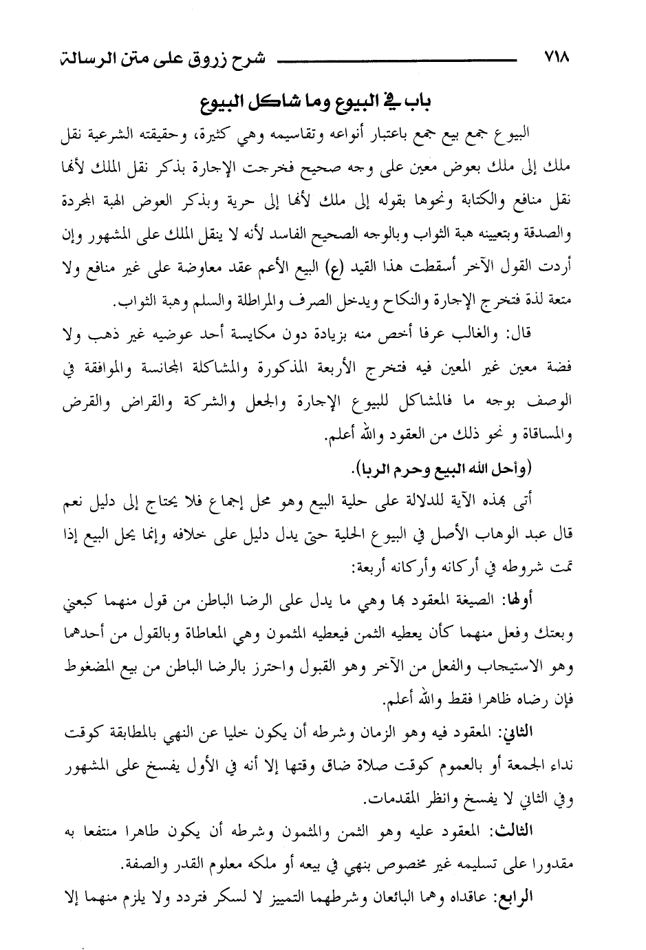 أتى بهذه الآية للدلالة على حلية البيع وهو محل إجماع فلا يحتاج إلى دليل نعم قال عبد الوهاب الأصل في البيوع الحلية حتى يدل دليل على خلافه وإنما يحل البيع إذا تمت شروطه في أركانه وأركانه أربعة:
