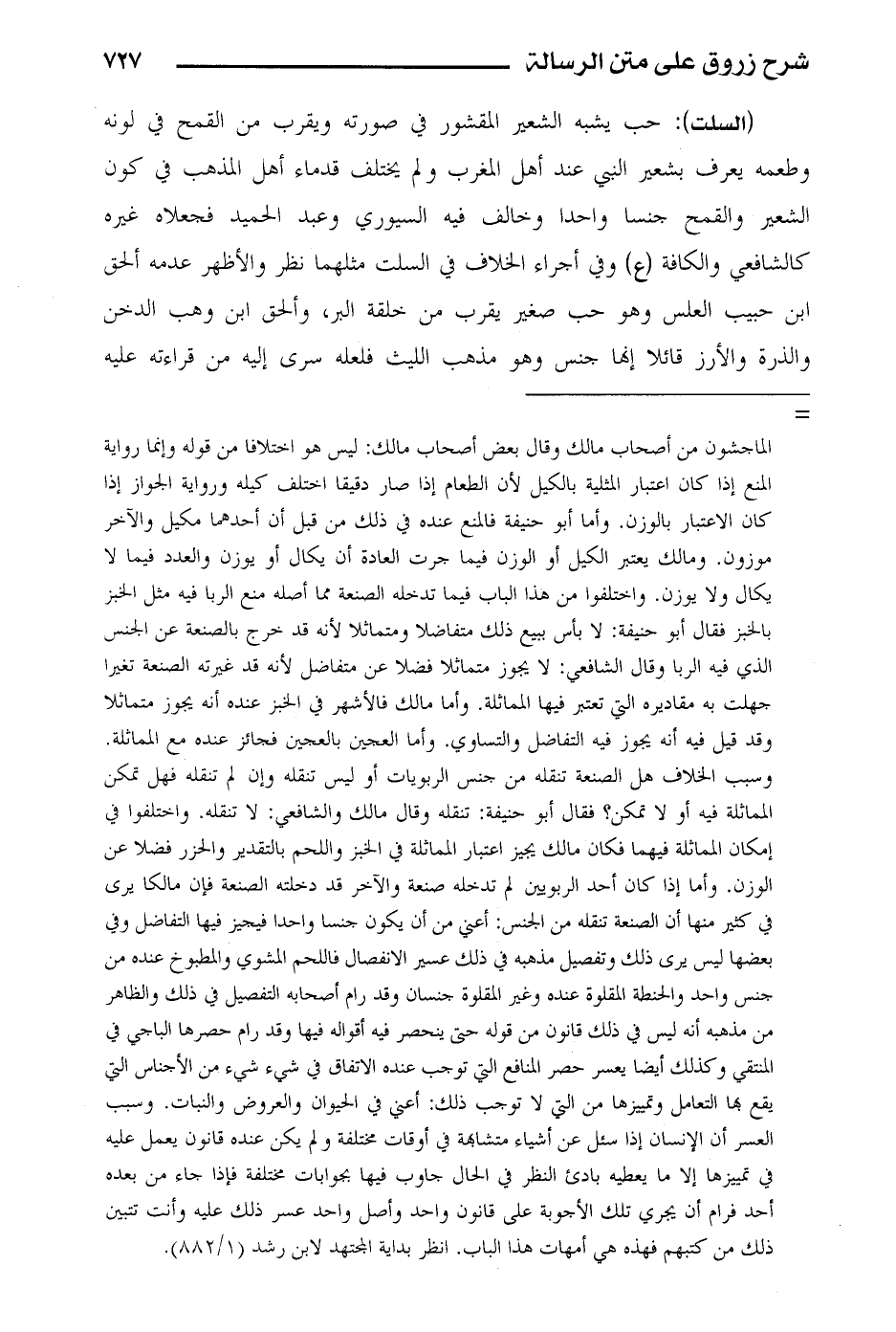 (السلت): حب يشبه الشعير المقشور في صورته ويقرب من القمح في لونه وطعمه يعرف بشعير النبي عند أهل المغرب ولم يختلف قدماء أهل المذهب في كون الشعير والقمح جنسا واحدا وخالف فيه السيوري وعبد الحميد فجعلاه غيره كالشافعي والكافة (ع) وفي أجراء الخلاف في السلت مثلهما نظر والأظهر عدمه ألحق ابن حبيب العلس وهو حب صغير يقرب من خلقة البر، وألحق ابن وهب الدخن والذرة الأرز قائلا إنها جنس وهو مذهب الليث فلعله سرى إليه من قراءته عليه