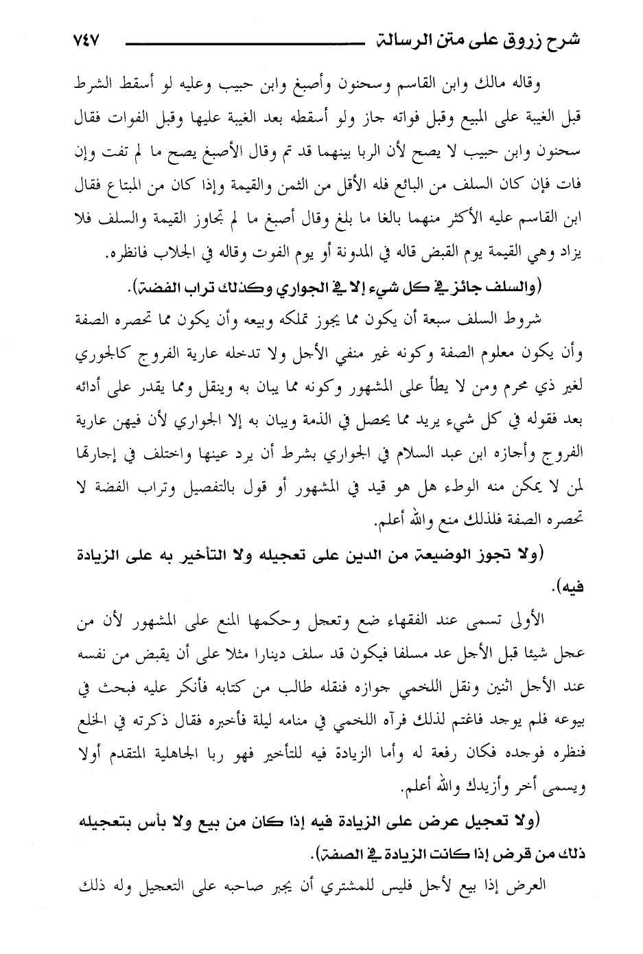 (ولا تعجيل عرض على الزيادة فيه إذا كان من بيع ولا بأس بتعجيله ذلك من قرض إذا كانت الزيادة في الصفة).