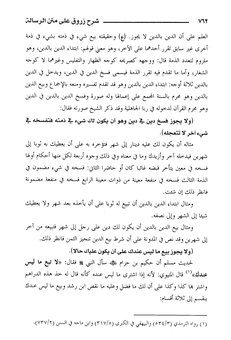 (لا يجوز فسخ دين في دين وهو أن يكون لك شيء في ذمته فتفسخه في شيء آخر لا تتعجله).