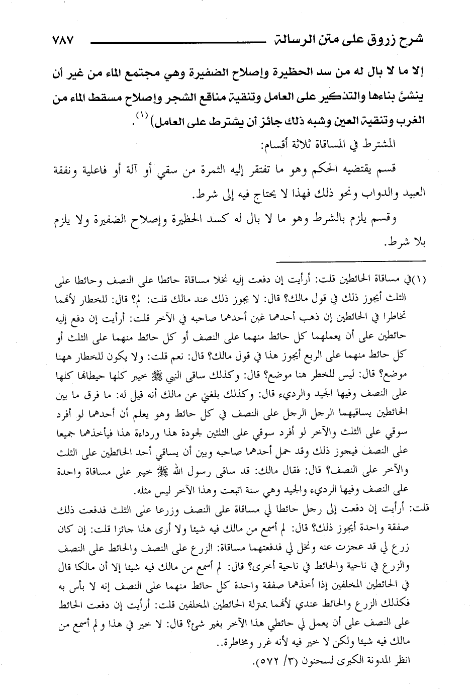 المشترط في المساقاة ثلاثة أقسام:
