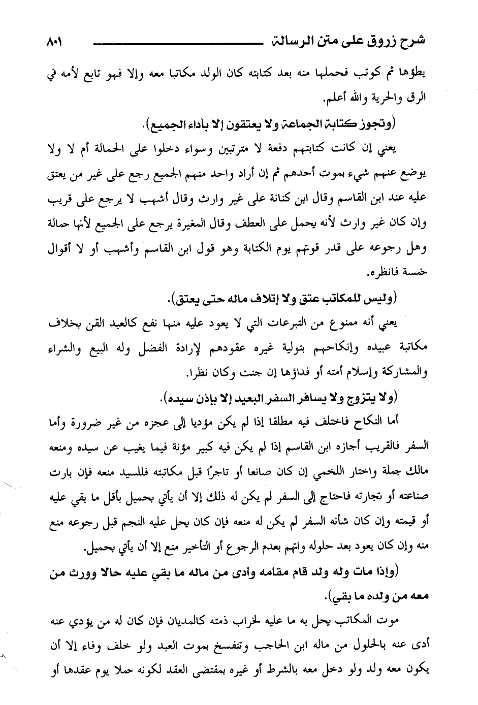 (ولا يتزوج ولا يسافر السفر البعيد إلا بإذن سيده).