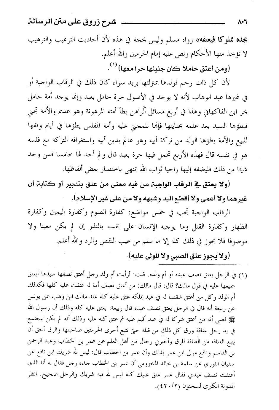 لأن كل ذات رحم فولدها بمنزلتها يريد سواء كان ذلك في الرقاب الواجبة أو غيرها عبد الوهاب لأنه لا يوجد في الأصول حرة حامل بعبد وإنما يوجد أمة حمل بحر ابن الفاكهاني وهذا في أربع مسائل الراهن يطأ أمته المرهونة وهو عديم والأمة تجني فيطؤها السيد بعد علمه بجنايتها فإنها للمجني عليه وأمة المفلس يطؤها في أيام وقفها للبيع والأمة يطؤها الولد من تركة أبيه وهو عالم بدين أبيه واستغراقه التركة مع فلسه هو في نفسه قال فهذه الأربع تحمل فيها حرة بعبد قال ولم أجد لها خامسا فمن وجد شيئا من ذلك فليضفه إليها راجيا ثواب الله انتهى باختصار بعض ألفاظها.