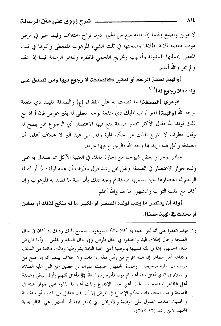 (والهبة لصلة الرحم أو لفقير كالصدقة لا رجوع فيها ومن تصدق على ولده فلا رجوع له).