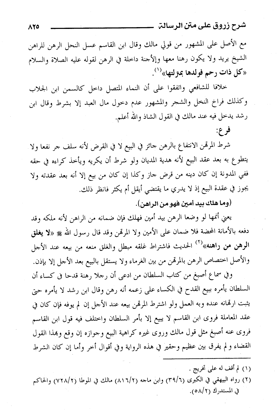 مع الأصل على المشهور من قولي مالك وقال ابن القاسم عسل النحل الرهن للراهن الشيخ يريد ولا يكون رهنا معها وإلا جنة داخلة في الرهن لقوله عليه الصلاة والسلام " كل ذات رحم فولدها بمنزلتها".