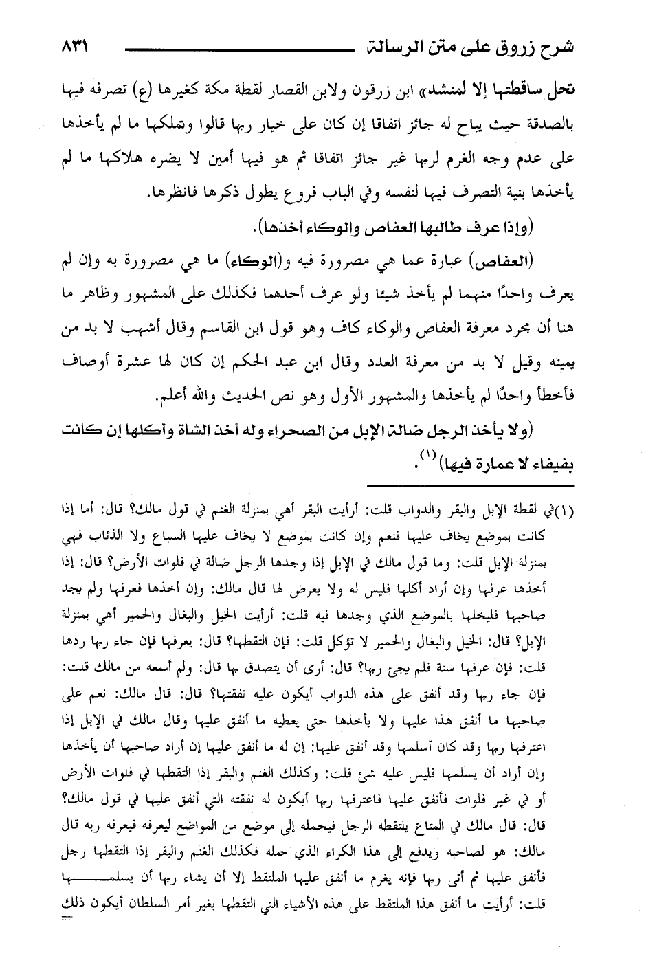 (ولا يأخذ الرجل ضالة الإبل من الصحراء وله أخذ الشاة وأكلها إن كانت فيفاء لا عمارة فيها).
