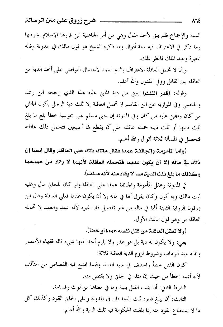 يعني: ولا يكون له دية بل هو هدر ولا يلزم أحدا منها شيء قاله فقهاء الأمصار ونقله عبد الوهاب وشروط لزنوم الدية العاقلة ثلاثة: