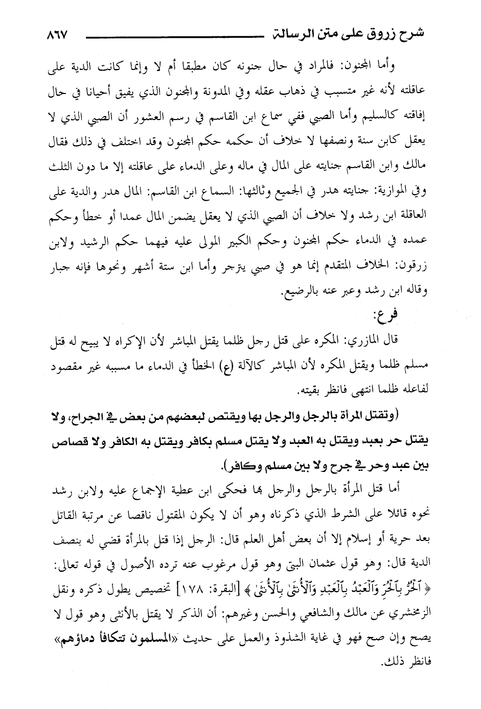 قال المازري المكره على قتل رجل ظلما يقتل المباشر لأن الإكراه لا يبيح له قتل مسلم ظلما ويقتل المكره لأن المباشر كالآلة (ع) الخطأ في الدماء ما مسببه غير مقصود لفاعله ظلما انتهى فانظر بقيته.