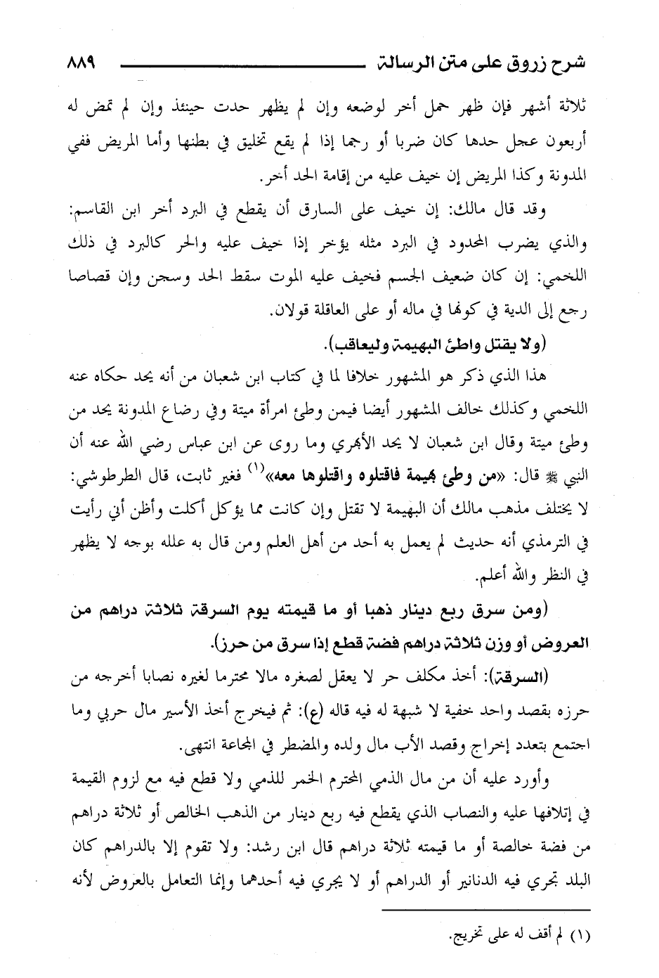 هذا الذي ذكر في المشهور خلافا لما في كتاب ابن شعبان من أنه يحد حكاه عنه اللخمي وكذلك خالف المشهور أيضا فيمن وطئ امرأة ميتة وفي رضاع المدونة يحد من وطئ ميتة وقال ابن شعبان لا يحد الأبهري وما روى عن ابن عباس رضي الله عنه أن النبي صلى الله عليه وسلم قال: " من وطئ بهيمة فاقتلوه واقتولها معه" فغير ثابت، قال الطرطوشي: لا يختلف مذهب مالك أن البهيمة لا تقتل وإن كانت مما يؤكل أكلت أظن أني رأيت في الترمذي أنه حديث لم يعمل به أحد من أهل العلم ومن قال به علله بوجه لا يظهر في النظر والله أعلم.