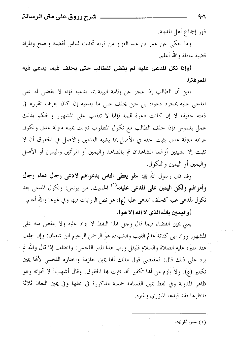 وقد قال رسول الله صلى الله عليه وسلم: " لو يعطى الناس بدعواهم لادعى رجال دماء رجال وأموالهم ولكن اليمين على المدعى عليه" الحديث. ابن يونس: وكول المدعي بعد نكول المدعى عليه كحلف المدعى عليه (ع): هونص الروايات فيها وفي غيرها والله أعلم.