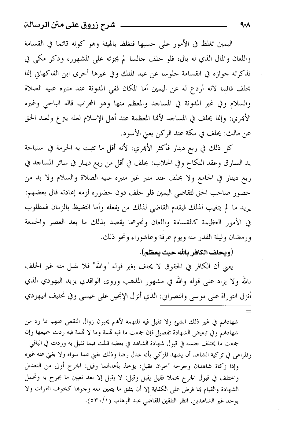 كل ذلك في ربع دينار فأكثر الأبهري: لأنه أقل ما تثبت به الحرمة في استباحة يد السارق وعقد النكاح وفي الجلاب: يحلف في أقل من ربع دينار في سائر المساجد في ربع دينار في الجامع ولا يحلف عند منبر غير منبره عليه الصلاة والسلام ولا بد من حضور صاحب الحق لتقاضي اليمين فلو حلف دون حضوره لزمه إعادته قال بعضهم: يريد ما لم يتغيب لذلك فيقدم القاضي لذلك من يفعله وأما التغليظ بالزمان فمطلوب في الأمور العظيمة كالقاسمة واللعان ونحوهما يقصد بذلك ما بعد العصر والجمعة ورمضان وليلة القدر منه ويوم عرفة وعاشوراء ونحو ذلك.
