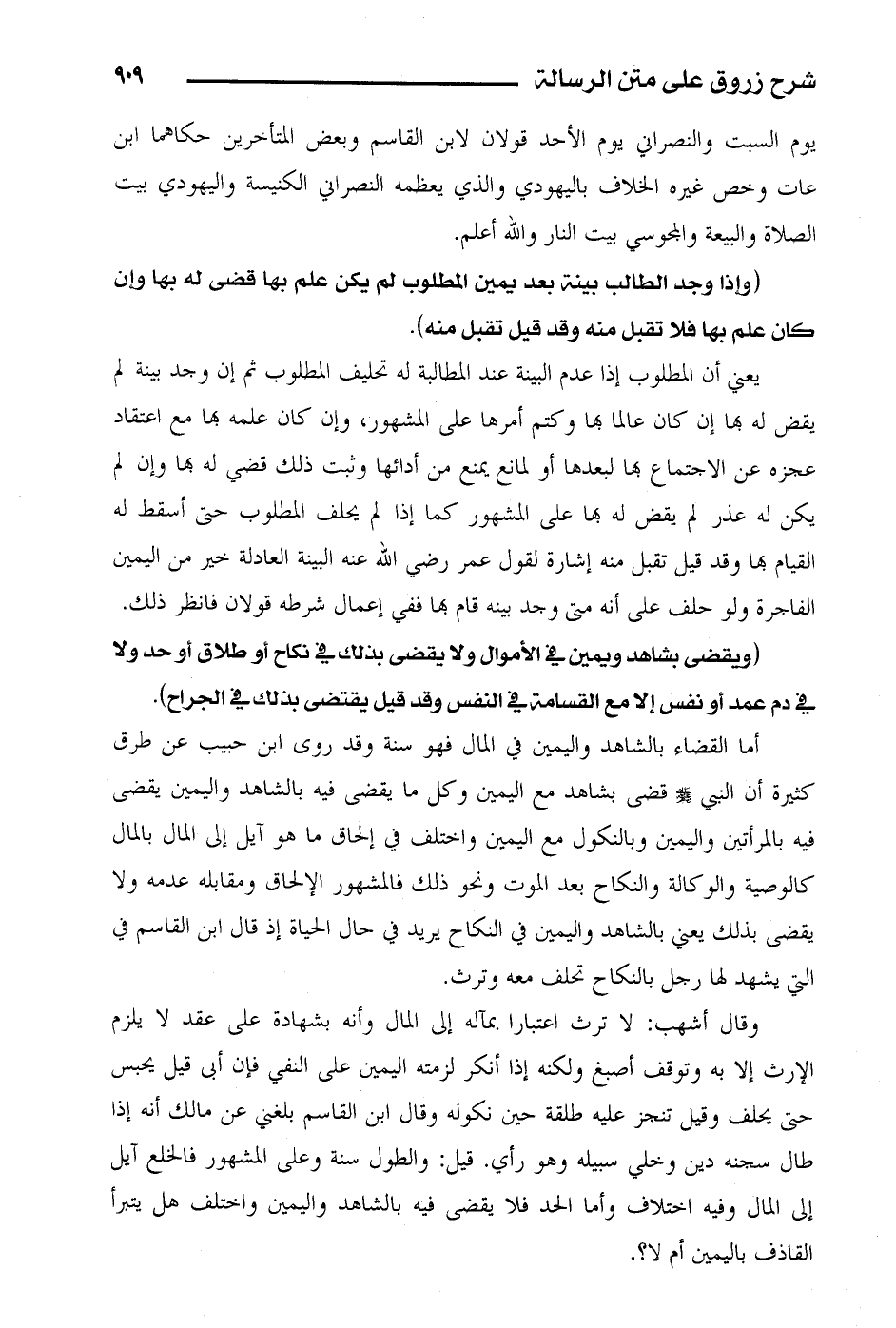 أما القضاء بالشاهد واليمين في المال فهو سنة وقد روى ابن حبيب عن طرق كثيرة أن النبي صلى الله عليه وسلم قضى بشاهد مع اليمين وكل ما يقضى فيه بالشاهد واليمين يقضى فيه بالمرأتين واليمين وبالنكول مع اليمين واختلف في إلحاق ما هو آيل إلى المال بالمال كالوصية والوكالة ولانكاح بعد الموت ونحو ذلك فالمشهور الإلحاق ومقابلة عدمه ولا يقضى بذلك يعني بالشاهد واليمين في النكاح يريد في حال الحياة إذ قال ابن القاسم في التي يشهد لها رجل بالنكاح تحلف معه وترث.