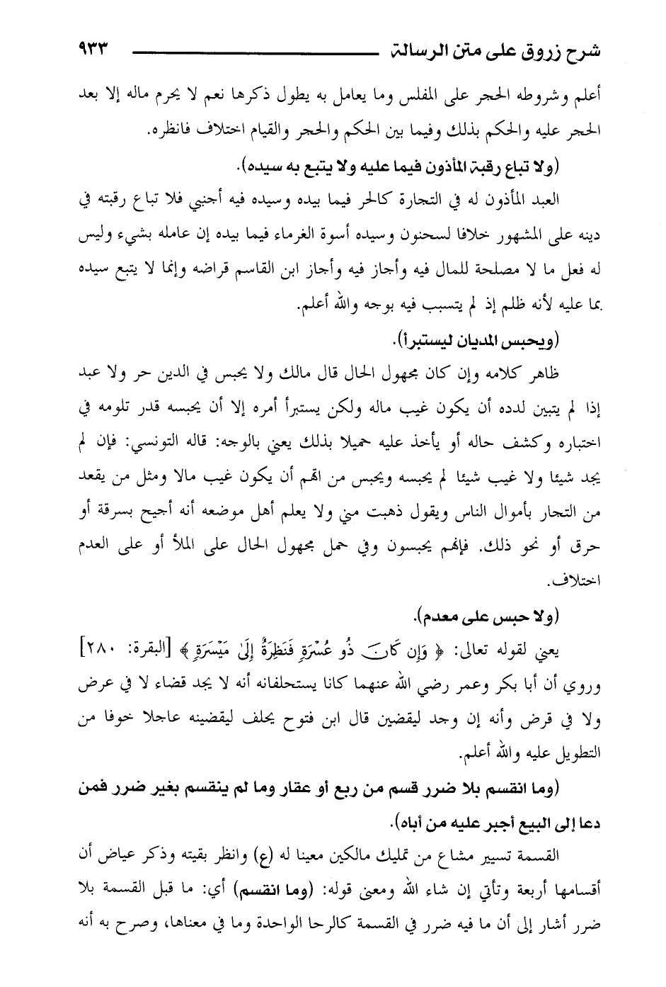 أعلم وشروطه الحجر على المفلس وما يعامل به يطول ذكرها نعم لا يحرم ماله إلا بعد الحجر عليه والحكم بذلك وفيما بين الحكم والحجر والقيام اختلاف فانظره.