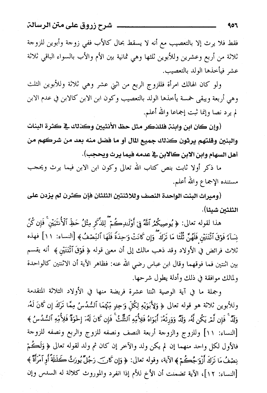 هذا لقوله تعالى: {يوصيكم الله في أولادكم للذكر مثل حظ الأنثيين فإن كان نساءً فوق اثنتين فلهن ثلثا ما ترك وإن كانت واحدة فلها النصف} [النساء: 11] فهذه ثلاث فرائض في الأولاد وقد ذهب مالك إلى أن معنى قوله {فوق اثنتين} أنه يقسم بين اثنتين فما فوقهما وقال ابن عباس رضي الله عنه: فظاهر الآية أن الاثنتين كالواحدة ولمالك موافقة في ذلك وأدلة يطول شرحها.