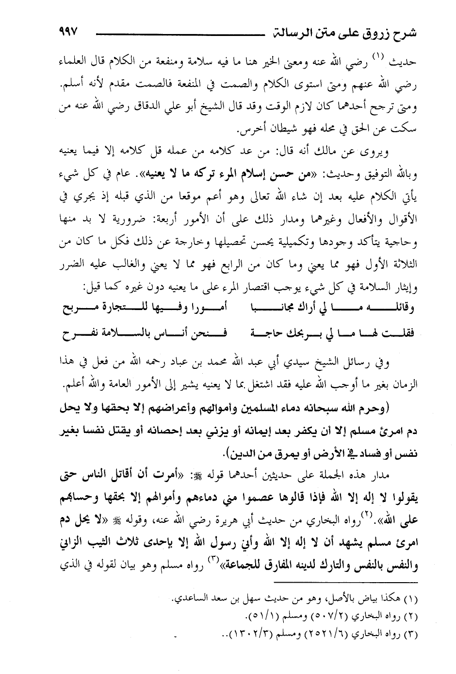 وفي رسائل الشيخ سيدي أبي عبد الله محمد بن عباد رحمه الله من فعل في هذا الزمان بغير ما أوجب الله عليه فقد اشتغل بما لا يعنيه يشير إلى الأمر العامة والله أعلم.