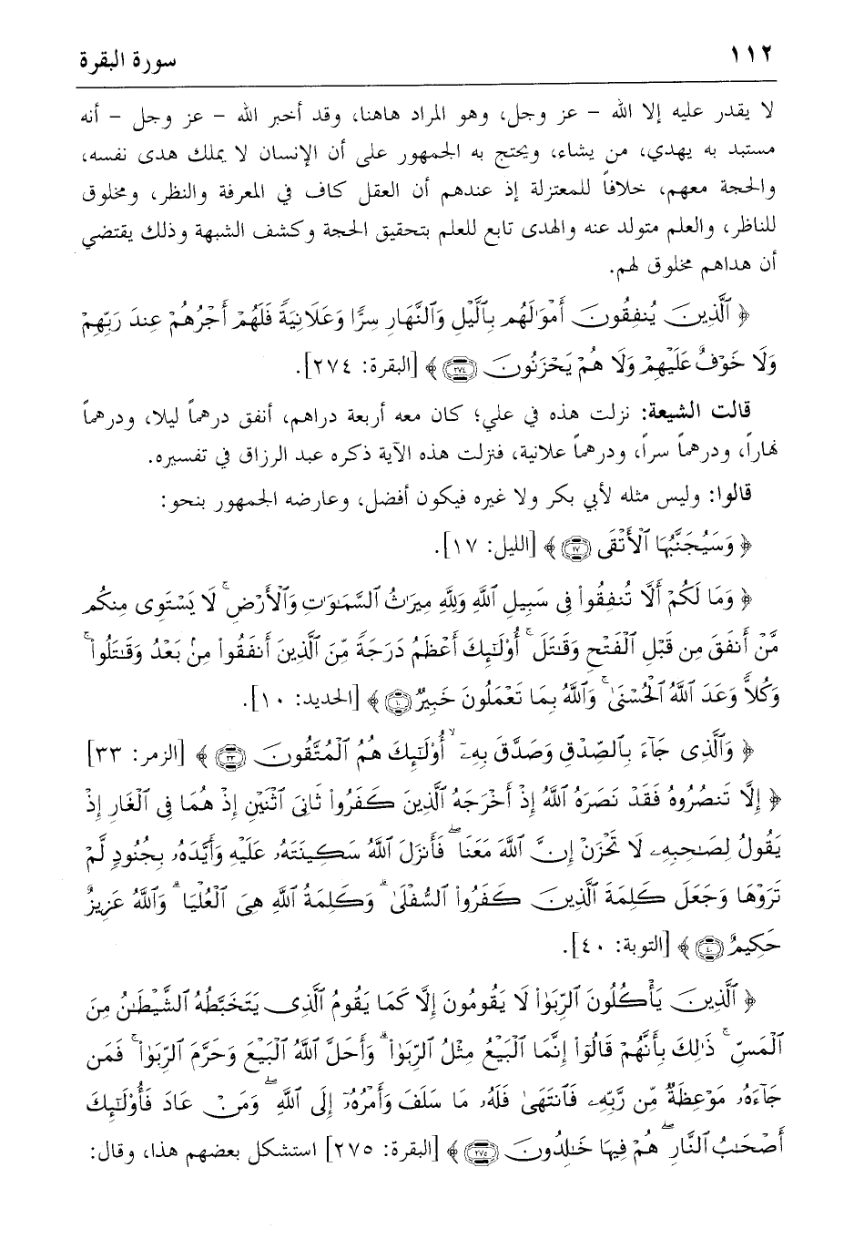 {الَّذِينَ يُنْفِقُونَ أَمْوالَهُمْ بِاللَّيْلِ وَالنَّهارِ سِرًّا وَعَلانِيَةً فَلَهُمْ أَجْرُهُمْ عِنْدَ رَبِّهِمْ وَلا خَوْفٌ عَلَيْهِمْ وَلا هُمْ يَحْزَنُونَ} (274) [البقرة: 274].