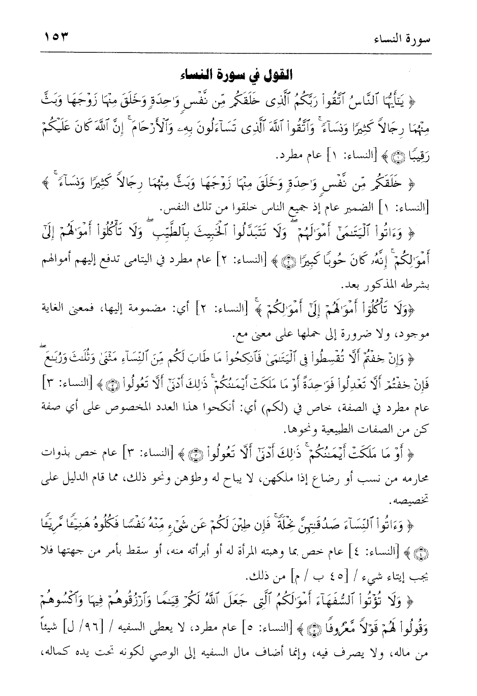 {يا أَيُّهَا النّاسُ اِتَّقُوا رَبَّكُمُ الَّذِي خَلَقَكُمْ مِنْ نَفْسٍ واحِدَةٍ وَخَلَقَ مِنْها زَوْجَها وَبَثَّ مِنْهُما رِجالاً كَثِيراً وَنِساءً وَاِتَّقُوا اللهَ الَّذِي تَسائَلُونَ بِهِ وَالْأَرْحامَ إِنَّ اللهَ كانَ عَلَيْكُمْ رَقِيباً} (1) [النساء: 1] عام مطرد.