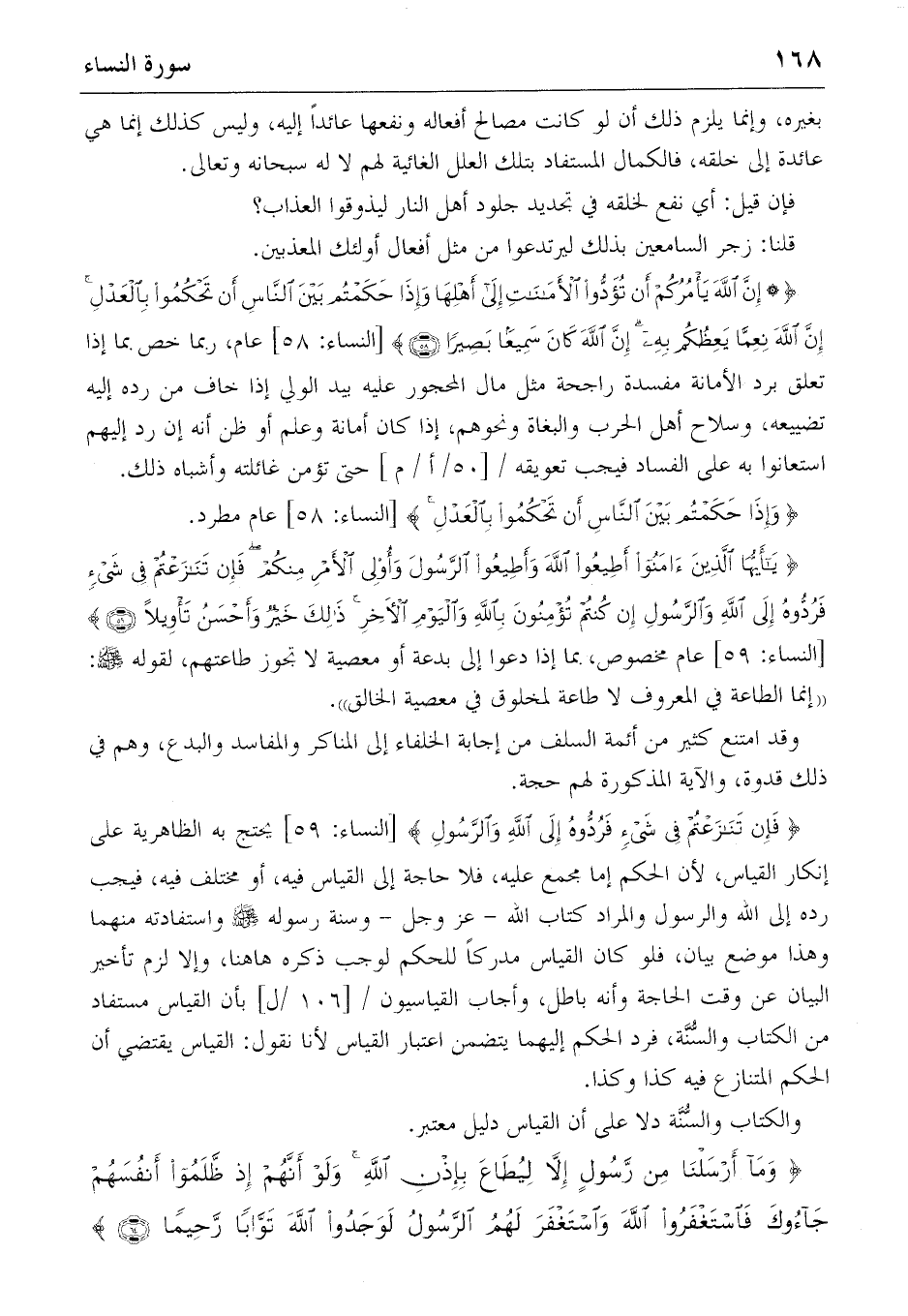 {وَإِذا حَكَمْتُمْ بَيْنَ النّاسِ أَنْ تَحْكُمُوا بِالْعَدْلِ} [النساء: 58] عام مطرد.