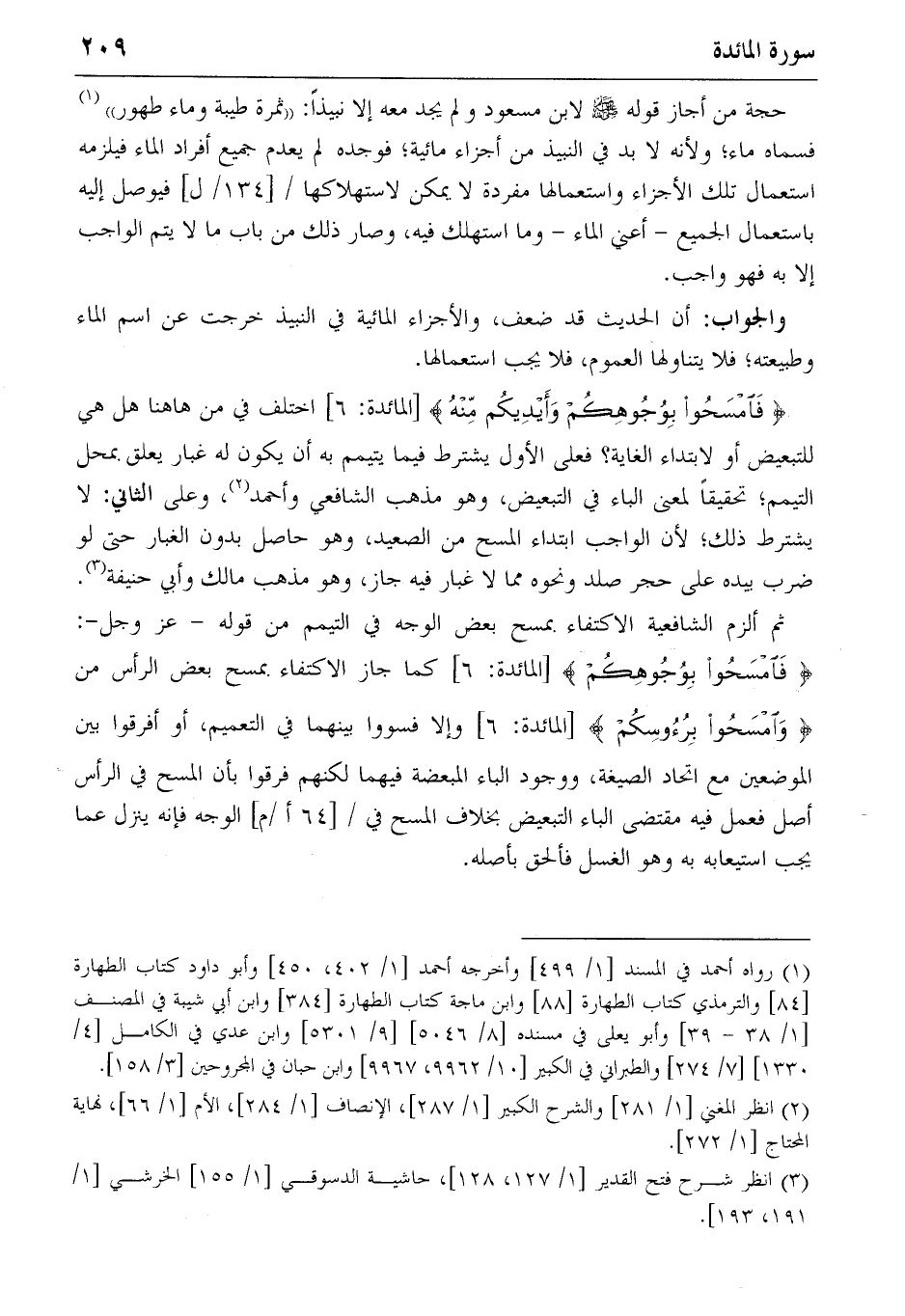 {فَامْسَحُوا بِوُجُوهِكُمْ} [المائدة: 6] كما جاز الاكتفاء بمسح بعض الرأس من {وَاِمْسَحُوا بِرُؤُسِكُمْ} [المائدة: 6] وإلا فسووا بينهما في التعميم، أو أفرقوا بين الموضعين مع اتحاد الصيغة، ووجود الباء المبعضة فيهما لكنهم فرقوا بأن المسح في الرأس أصل فعمل فيه مقتضى الباء التبعيض بخلاف المسح في/ [64 أ/م] الوجه فإنه ينزل عما يجب استيعابه به وهو الغسل فألحق بأصله.