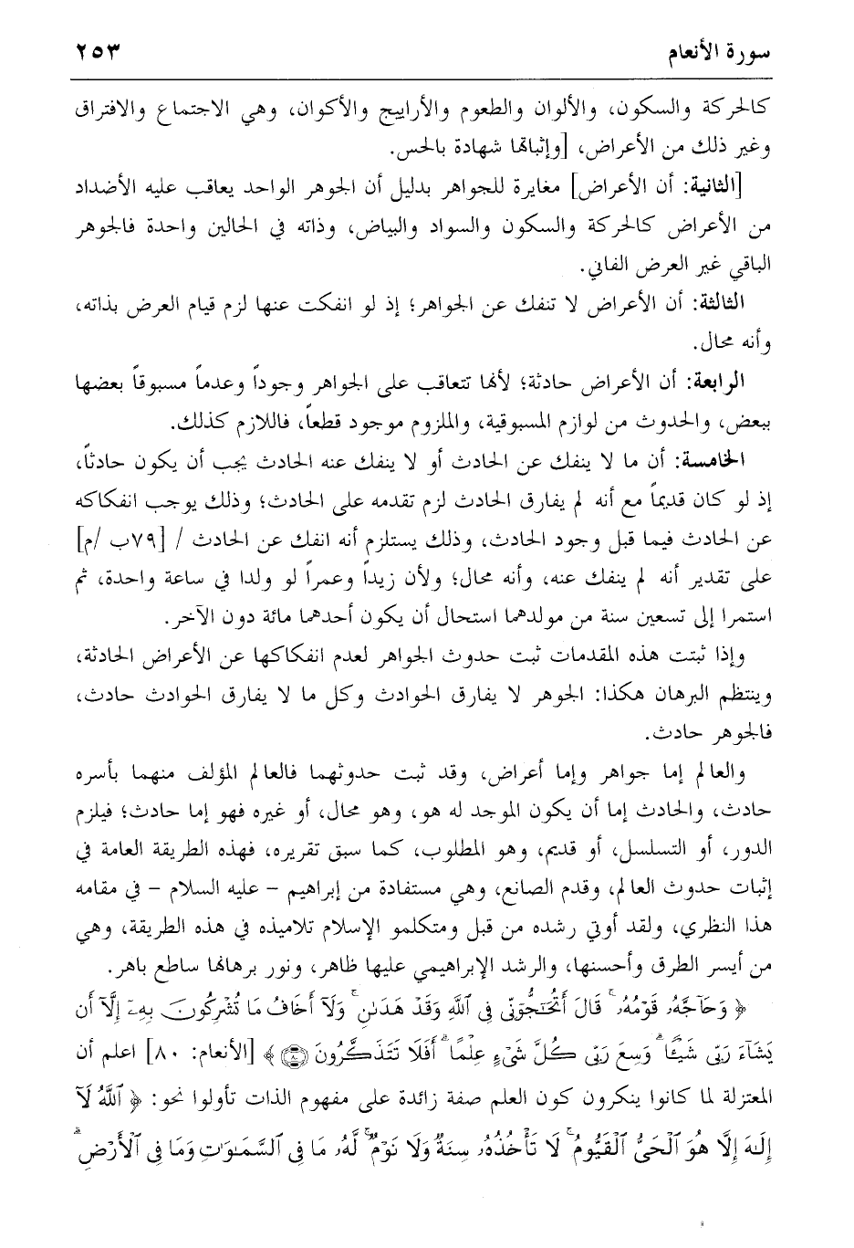 وإذا ثبتت هذه المقدمات ثبت حدوث الجواهر لعدم انفكاكها عن الأعراض الحادثة، وينتظم البرهان هكذا: الجوهر لا يفارق الحوادث وكل ما لا يفارق الحوادث حادث، فالجوهر حادث.