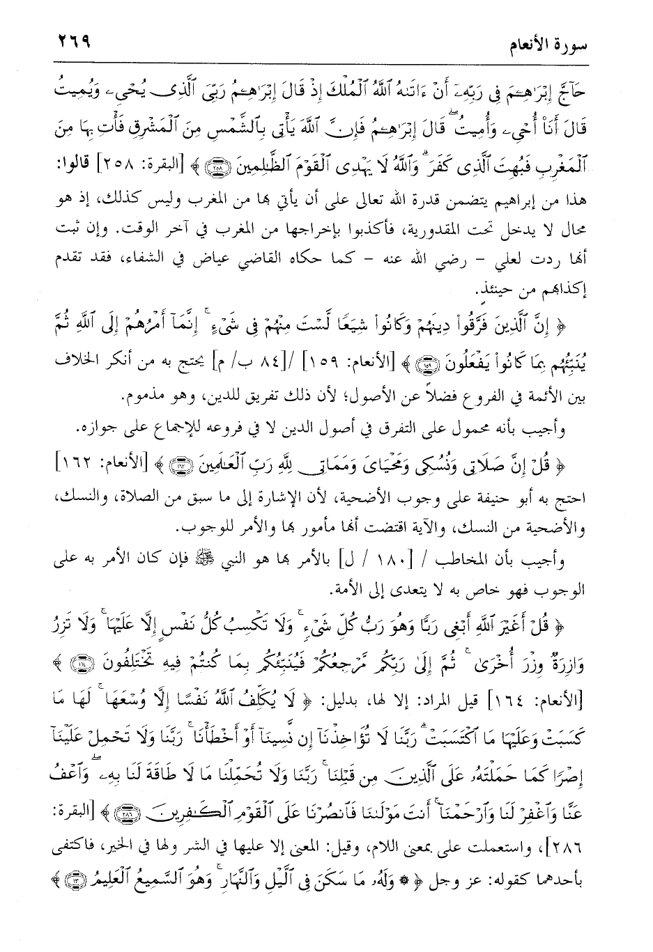 {قُلْ أَغَيْرَ اللهِ أَبْغِي رَبًّا وَهُوَ رَبُّ كُلِّ شَيْءٍ وَلا تَكْسِبُ كُلُّ نَفْسٍ إِلاّ عَلَيْها وَلا تَزِرُ وازِرَةٌ وِزْرَ أُخْرى ثُمَّ إِلى رَبِّكُمْ مَرْجِعُكُمْ فَيُنَبِّئُكُمْ بِما كُنْتُمْ فِيهِ تَخْتَلِفُونَ} (164) [الأنعام: 164] قيل المراد: إلا لها، بدليل: {لا يُكَلِّفُ اللهُ نَفْساً إِلاّ وُسْعَها لَها ما كَسَبَتْ وَعَلَيْها مَا اِكْتَسَبَتْ رَبَّنا لا تُؤاخِذْنا إِنْ نَسِينا أَوْ أَخْطَأْنا رَبَّنا وَلا تَحْمِلْ عَلَيْنا إِصْراً كَما حَمَلْتَهُ عَلَى الَّذِينَ مِنْ قَبْلِنا رَبَّنا وَلا تُحَمِّلْنا ما لا طاقَةَ لَنا بِهِ وَاُعْفُ عَنّا وَاِغْفِرْ لَنا وَاِرْحَمْنا أَنْتَ مَوْلانا فَانْصُرْنا عَلَى الْقَوْمِ الْكافِرِينَ} (286) [البقرة: