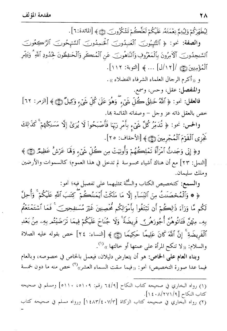 والصفة: نحو: {التّائِبُونَ الْعابِدُونَ الْحامِدُونَ السّائِحُونَ الرّاكِعُونَ السّاجِدُونَ الْآمِرُونَ بِالْمَعْرُوفِ وَالنّاهُونَ عَنِ الْمُنْكَرِ وَالْحافِظُونَ لِحُدُودِ اللهِ وَبَشِّرِ الْمُؤْمِنِينَ} [12/ل]. . . [التوبة: 112].