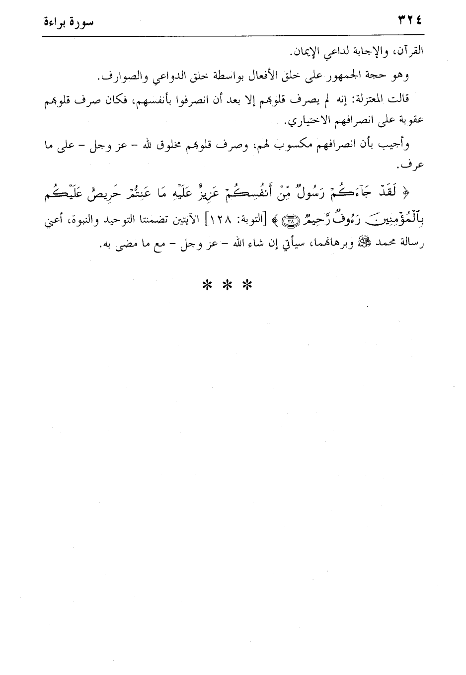 {لَقَدْ جاءَكُمْ رَسُولٌ مِنْ أَنْفُسِكُمْ عَزِيزٌ عَلَيْهِ ما عَنِتُّمْ حَرِيصٌ عَلَيْكُمْ بِالْمُؤْمِنِينَ رَؤُفٌ رَحِيمٌ} (128) [التوبة: 128] الآيتين تضمنتا التوحيد والنبوة، أعني رسالة محمد صلّى الله عليه وسلّم وبرهانهما، سيأتي إن شاء الله-عز وجل-مع ما مضى به.