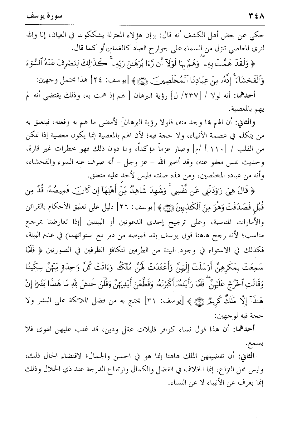 {وَلَقَدْ هَمَّتْ بِهِ وَهَمَّ بِها لَوْلا أَنْ رَأى بُرْهانَ رَبِّهِ كَذلِكَ لِنَصْرِفَ عَنْهُ السُّوءَ وَالْفَحْشاءَ إِنَّهُ مِنْ عِبادِنَا الْمُخْلَصِينَ} (24) [يوسف: 24] هذا يحتمل وجهين: