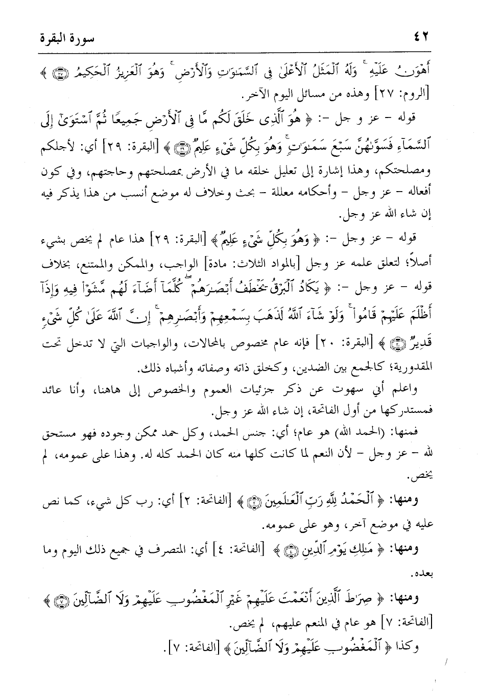 واعلم أني سهوت عن ذكر جزئيات العموم والخصوص إلى هاهنا، وأنا عائد فمستدركها من أول الفاتحة، إن شاء الله عز وجل.