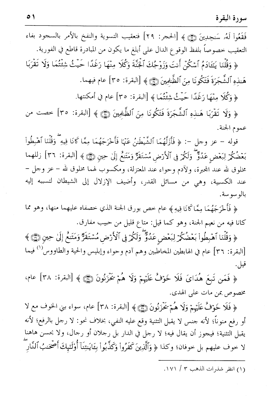 {وَلا تَقْرَبا هذِهِ الشَّجَرَةَ فَتَكُونا مِنَ الظّالِمِينَ} (35) [البقرة: 35] خصت من عموم الجنة.